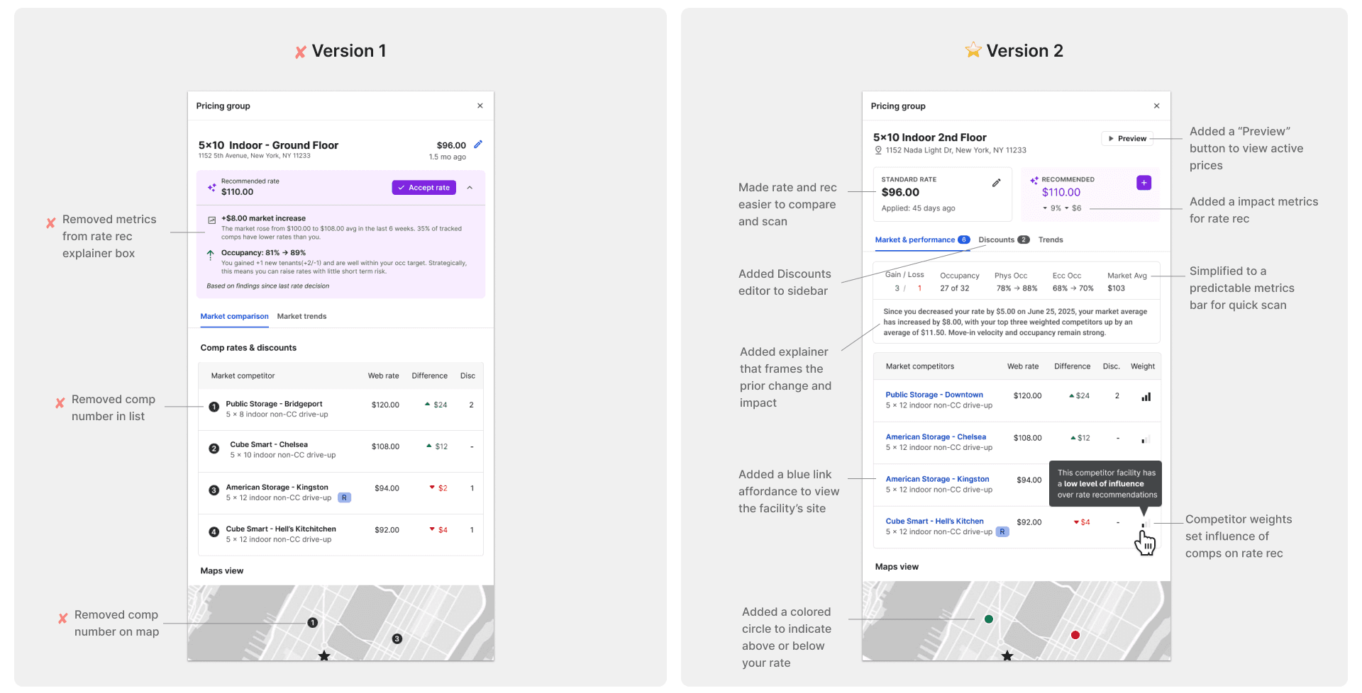 The experience had to support key workflows such as setting rates individually or in bulk and analyzing data patterns across pricing groups. We leaned on familiar data-table behaviors — sorting, filtering, and grouping — to help operators quickly spot outliers and trends, and act decisively.