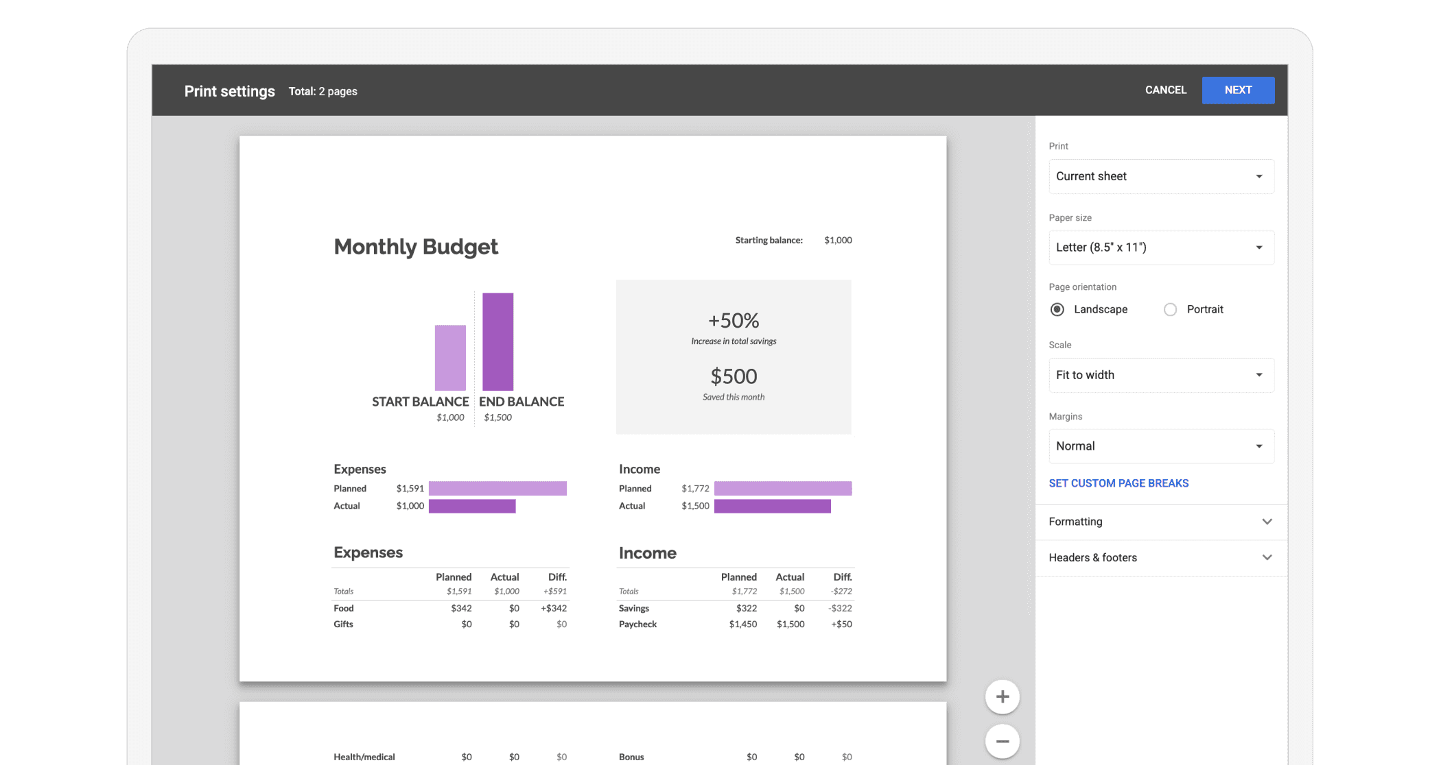 A clearer, more powerful, customizable print UX for Google Sheets