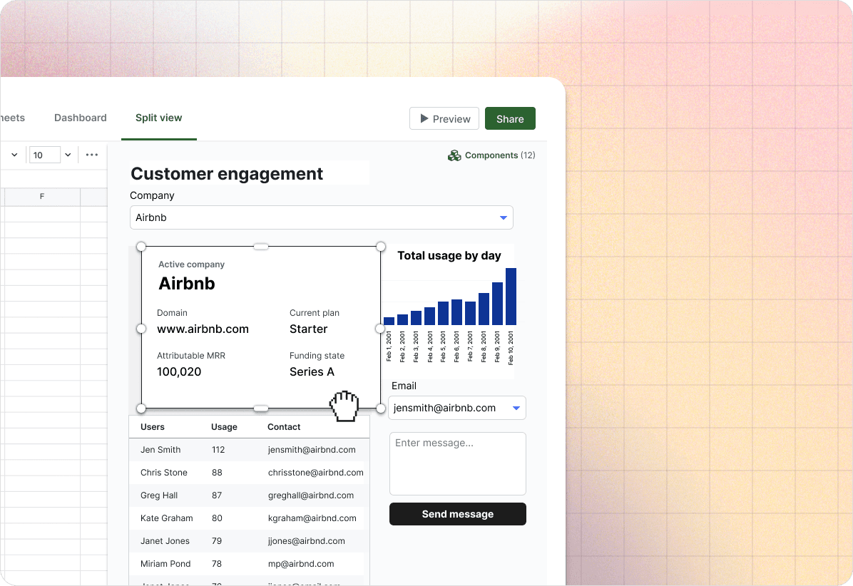 We focused a lot of energy and resources on the dashboard builder experience while I was there. The idea was that this would serve as the place where users would build shareable applications and where they triggered workflow automation. The team pivoted away from this emphasis after I left. There were significant eng hurdles involved, and it wasn’t the product differentiator we had imagined.
