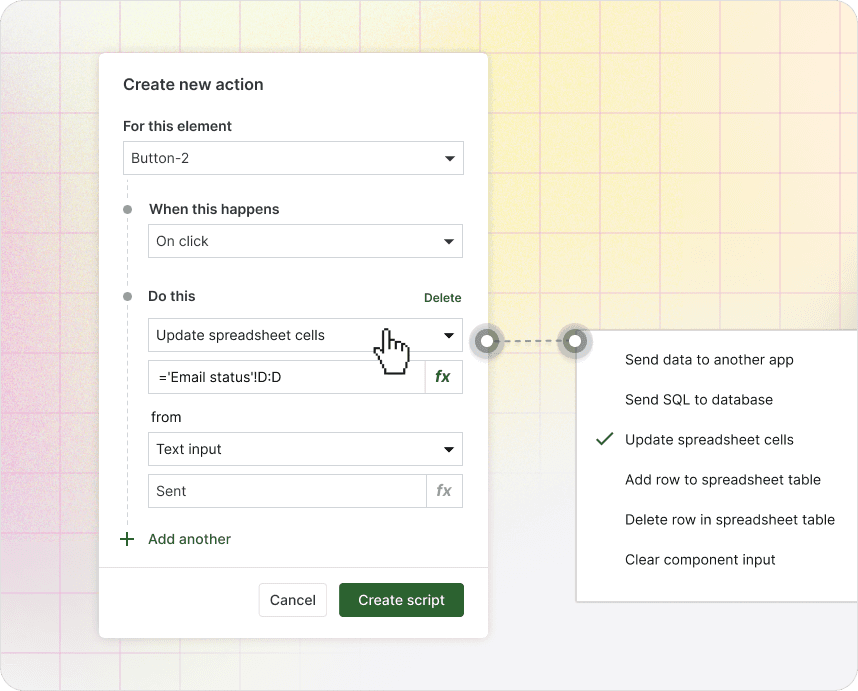 We designed the experience to tap into the deep well of knowledge users bring to spreadsheet software like Sheets and Excel. We use that level of familiarity and comfort as a catalyst to inspire more advanced and new application and automation-building experiences.